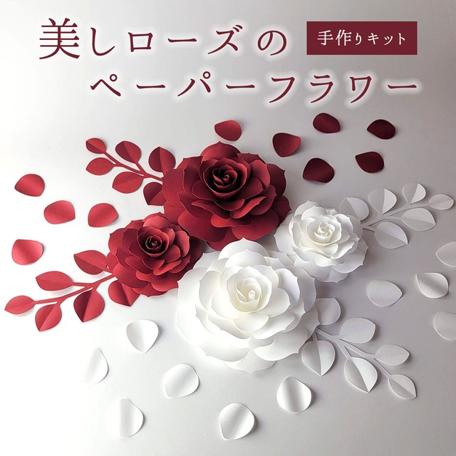 美しローズのペーパーフラワーDIYキット(祝い紅&ホワイト)