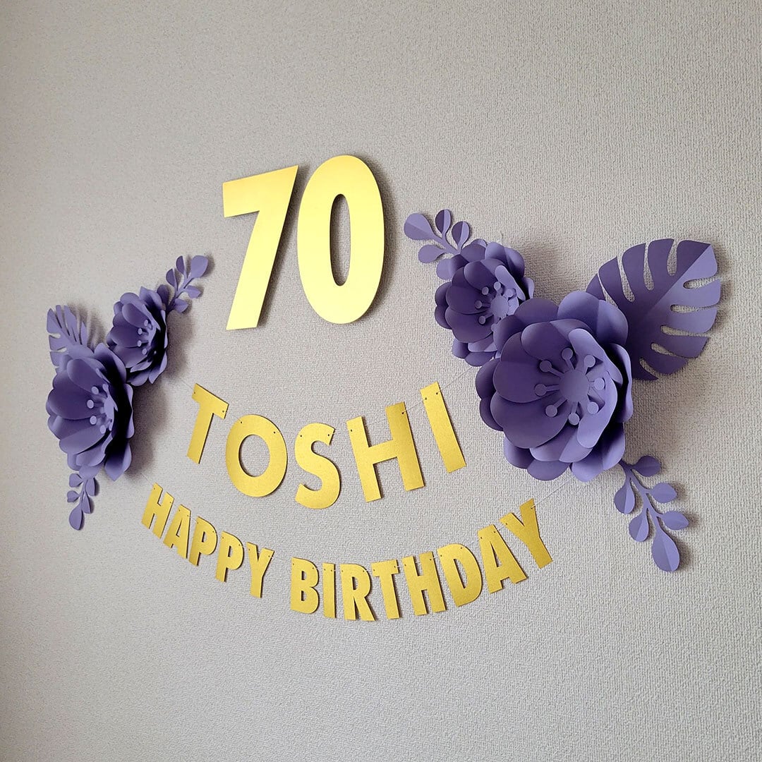 【古希 70歳誕生日】紫色のフラワーアーチ飾り付けセット ペーパーフラワー ガーランド 数字バナー 名前ガーランド | HAPPY BIRTHDAY CRAFTS(ハピバクラフト)〜誕生日の飾り付けや手作りメッセージカードのお店