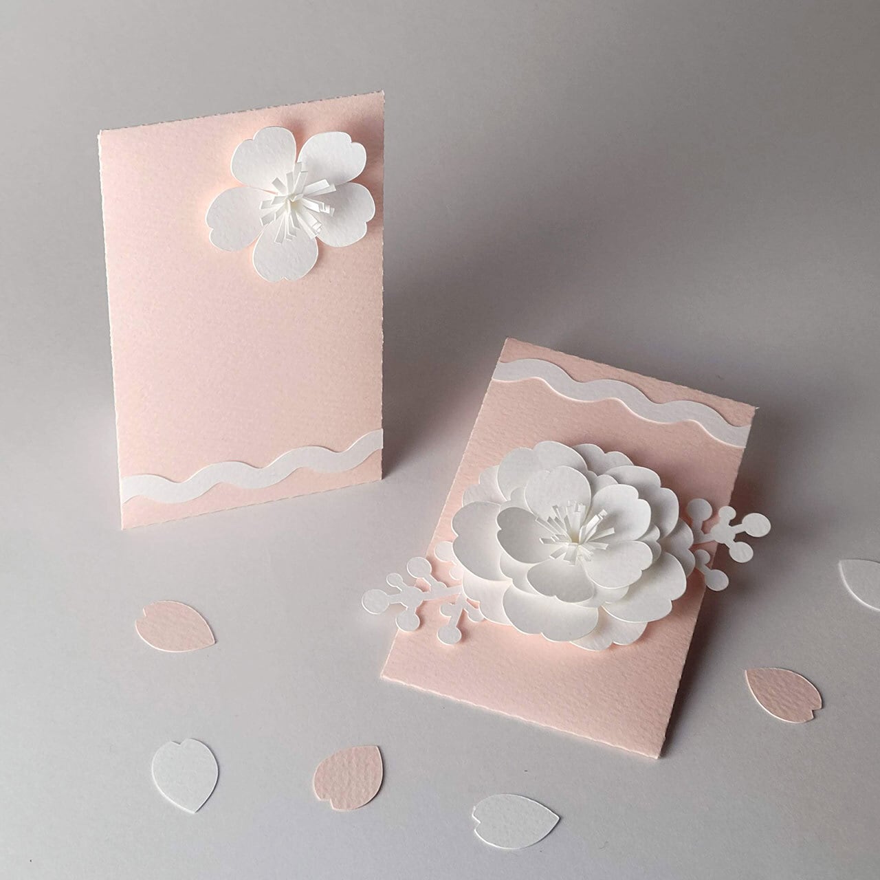 桜のペーパーフラワーと、柔らかな波のラインがリンクする、遊び心あふれるポチ袋セットです。