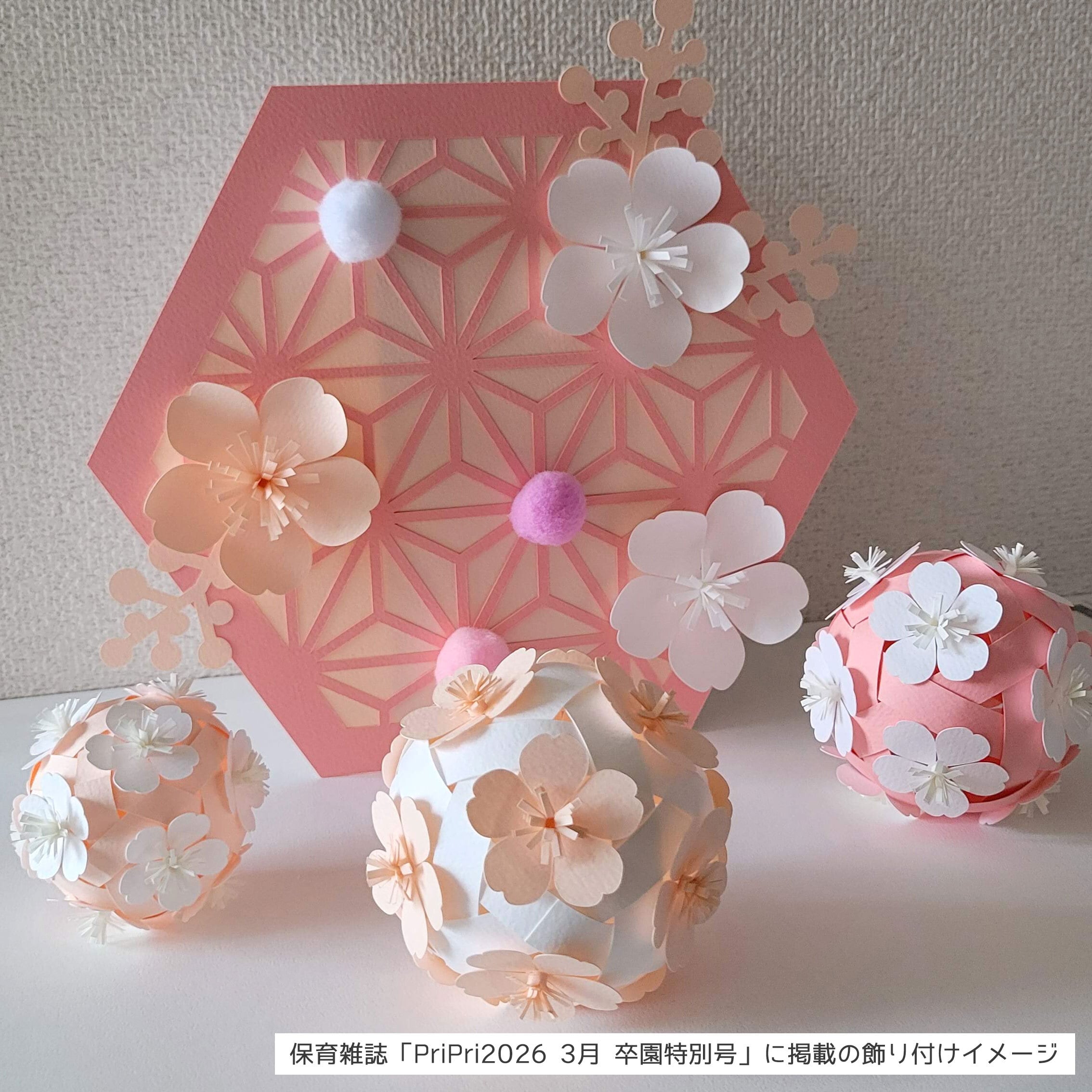 リバーシブルな2点セット: 「桜の花」と「手まり本体」のカラーが対になった、色違いの2種類が作れます。並べて飾ることで、より一層春らしい華やかな空間を演出します。