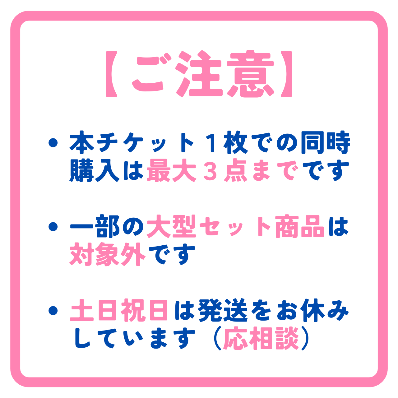 ・本チケット1枚で、同時購入(チケット1枚につき同時購入は最大3点まで)された全ての商品を翌日発送いたします。